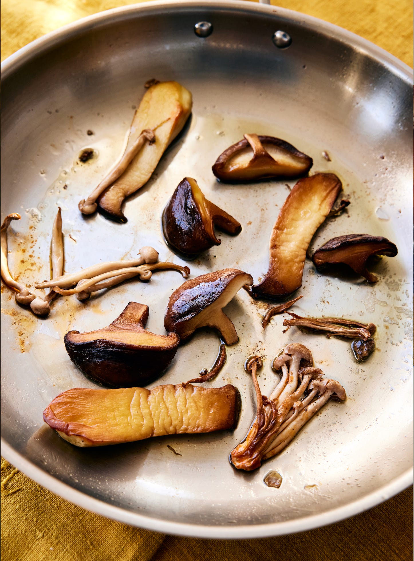 12 ounces wild mushrooms (such as maitake, oyster, king trumpet, etc.), halved, quartered, or cut into bite-sized pieces