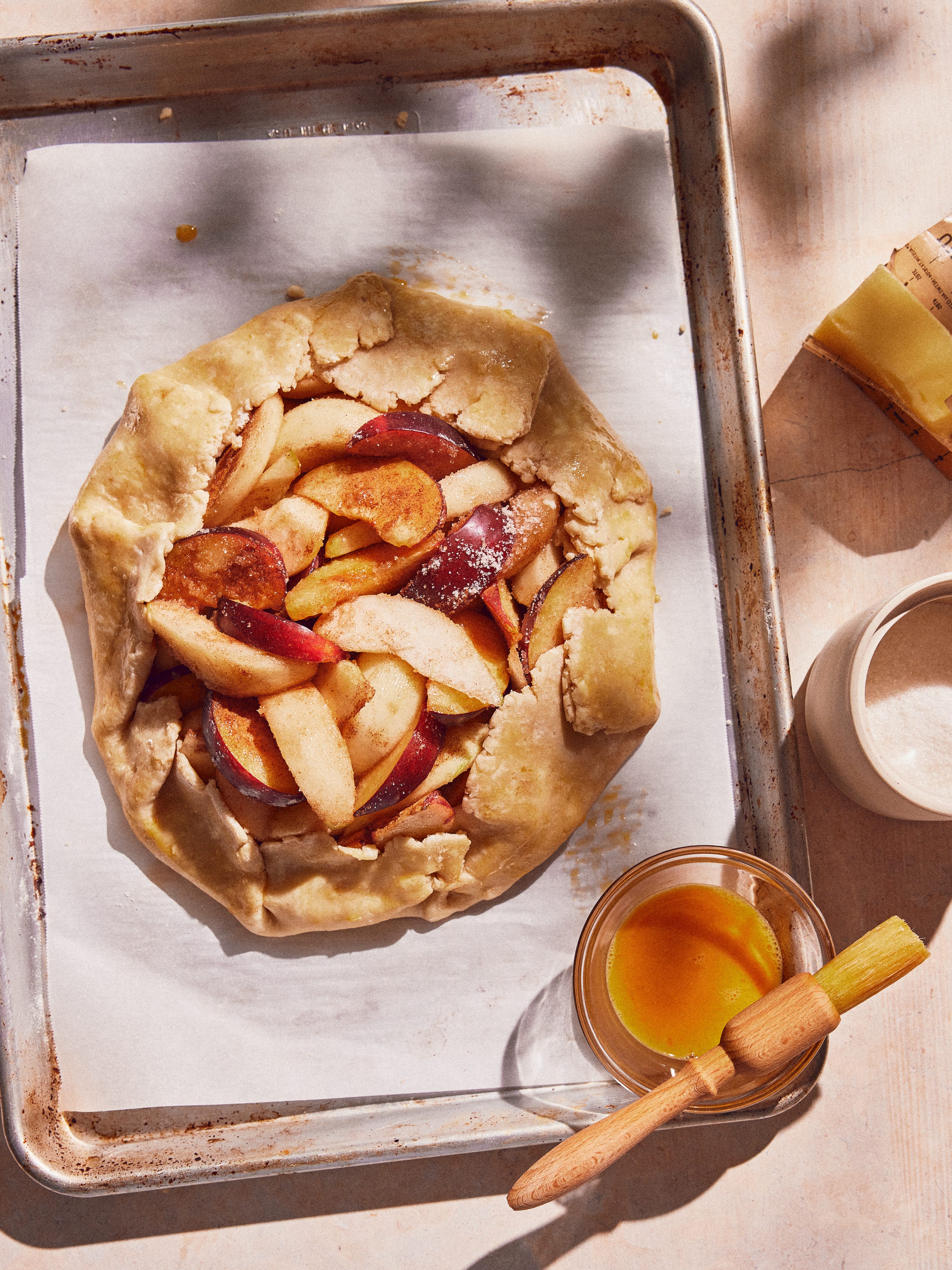 *If you’re using gluten-free flour, the dough will be crumbly. Feel free to use the edge of the parchment to help you fold it over the filling, and don’t worry if it cracks. Press it to seal—the important thing is that you don’t want the fruit or fruit juices to ooze out, but it’s OK if it’s rustic. It’s a galette; it should be!