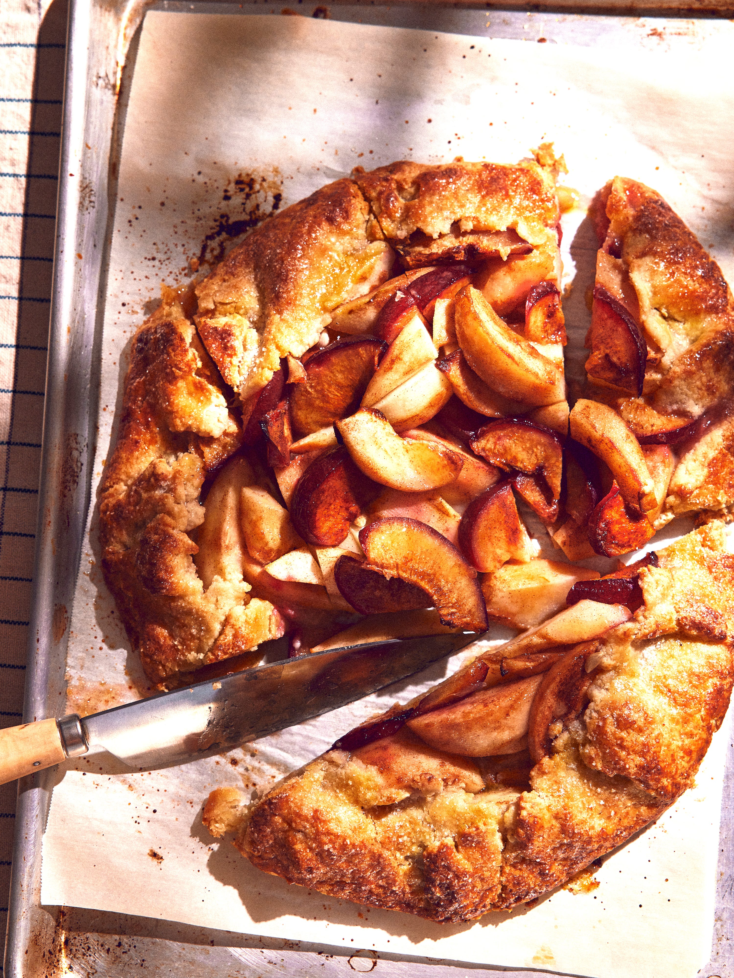 7. BAKE: Bake until the filling is oozy and bubbling and the crust is deep golden brown—about 55 to 65 minutes. Remove from the oven and cool for 20 minutes to let the juices thicken. Transfer to a serving plate, and slide out the paper or cut around it. Serve warm with vanilla ice cream, or cool completely and serve at room temperature.
