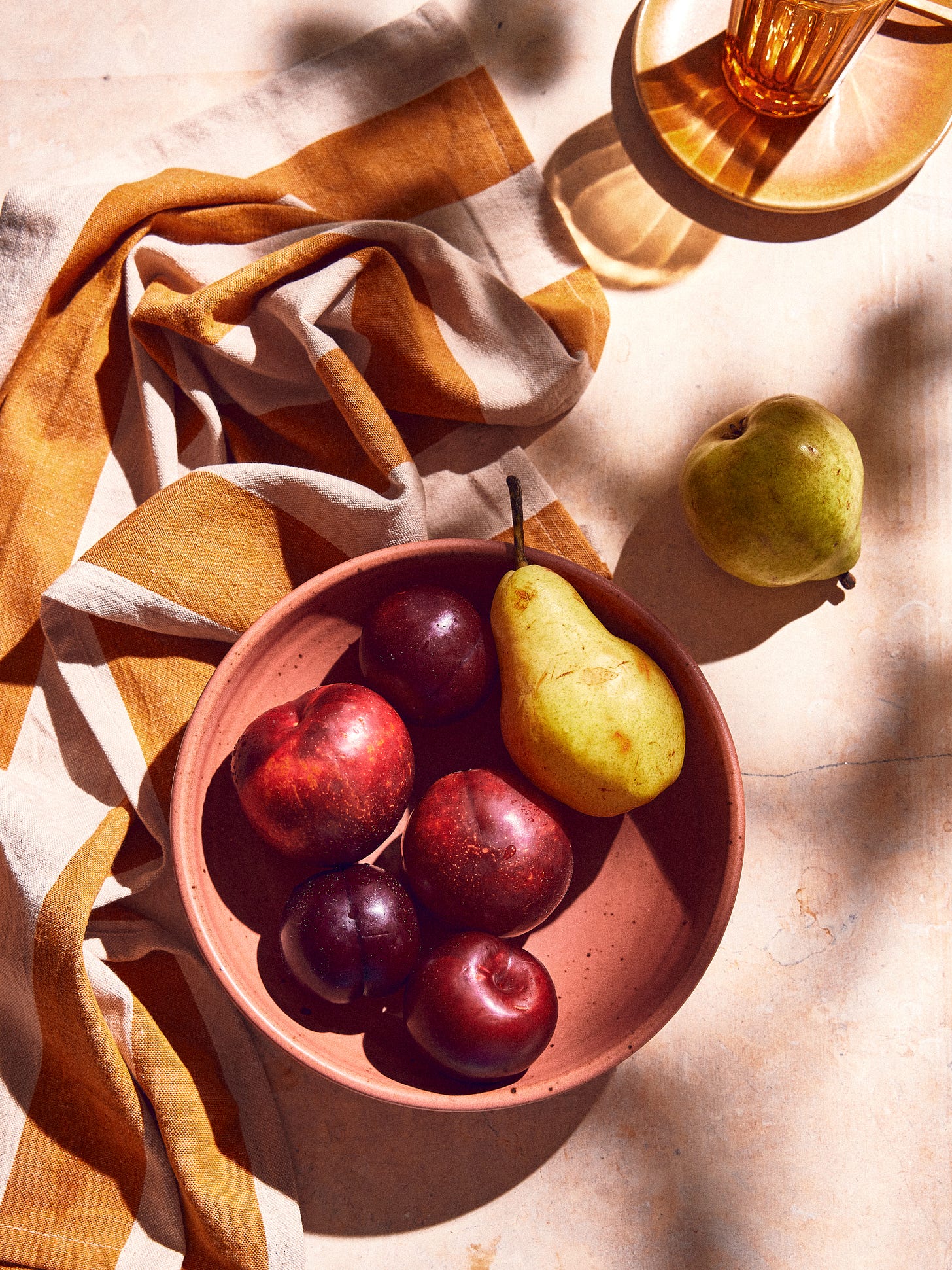 2 to 3 large plums, ripe by firm, pitted and sliced